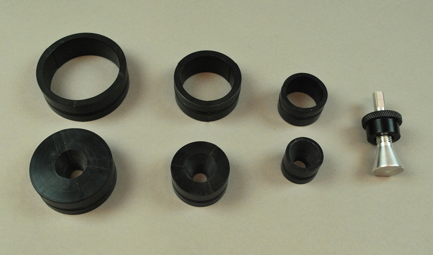 1 Each Small, Medium, and Large Spinning Reel Adapter with a shared Aluminum Mandrel.