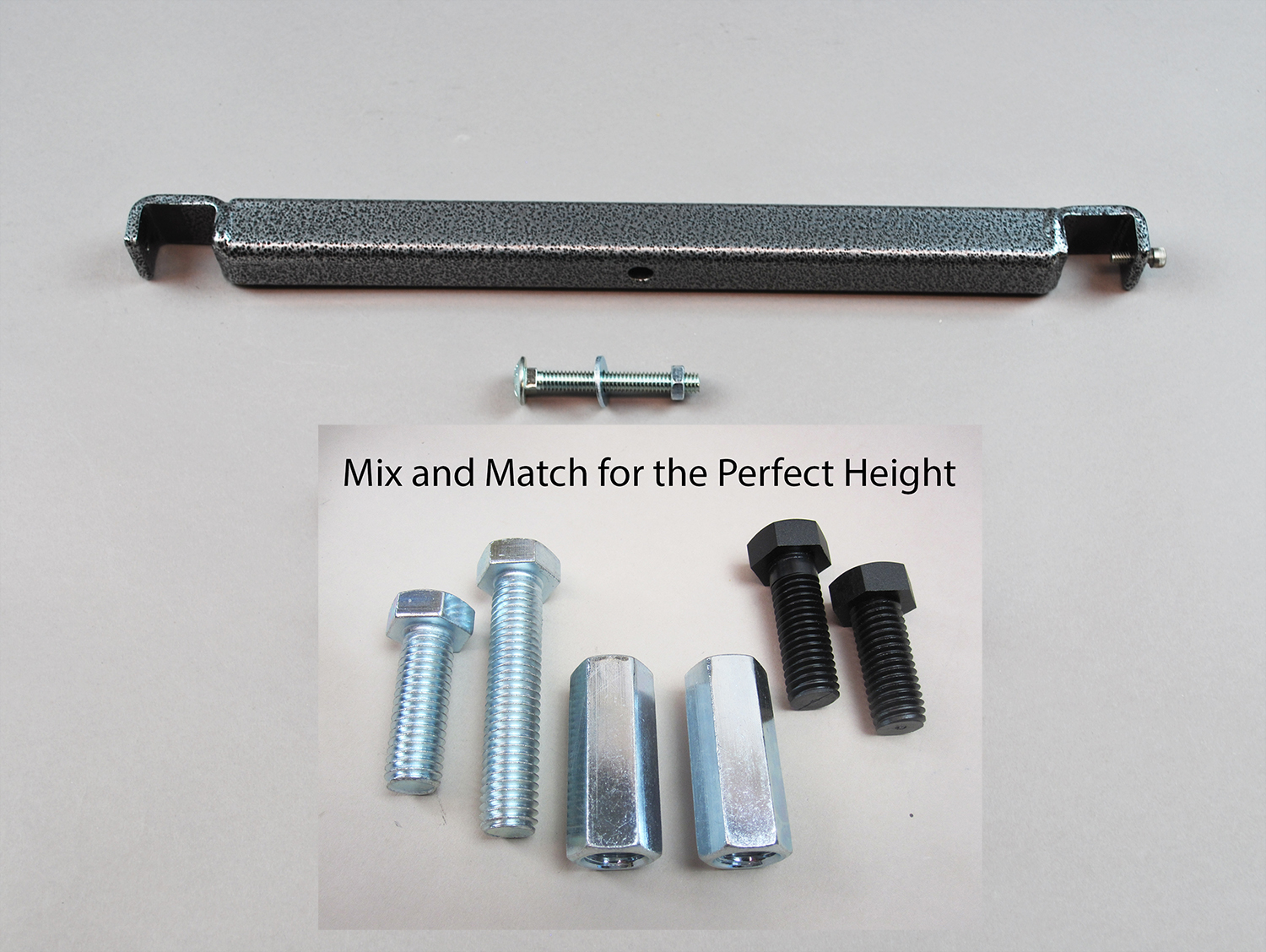 Hold Down Bar: will connect and stabilize any bulk spool holder frame to a Reel Winder frame. Comes with optional bolt and nut for mounting to a board or a work surface.